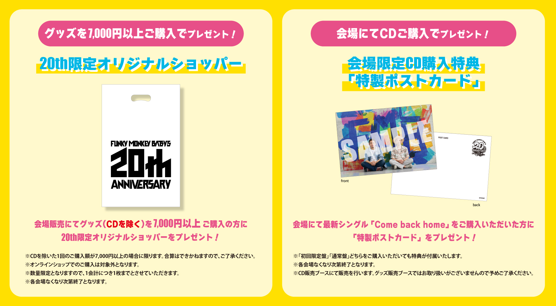 FUNKY MONKEY BΛBY'S 20th anniversary TOUR ~そのまんま東へ西へ~ 岡山公演にて、会場でのグッズ販売を実施いたします。