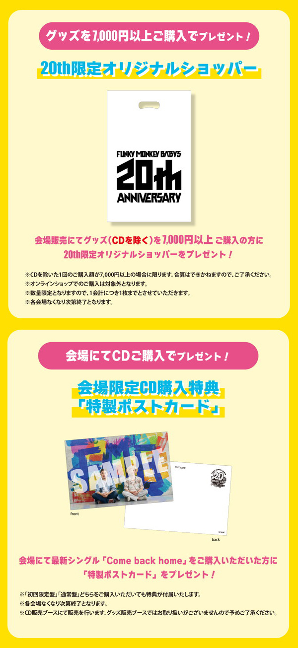 [FMB] 岡山公演当日のグッズ販売に関してのご案内&新作アイテム販売決定!-デビュー20周年全国ツアー「FUNKY MONKEY BΛBY'S 20th anniversary TOUR ~そのまんま東へ西へ~」-