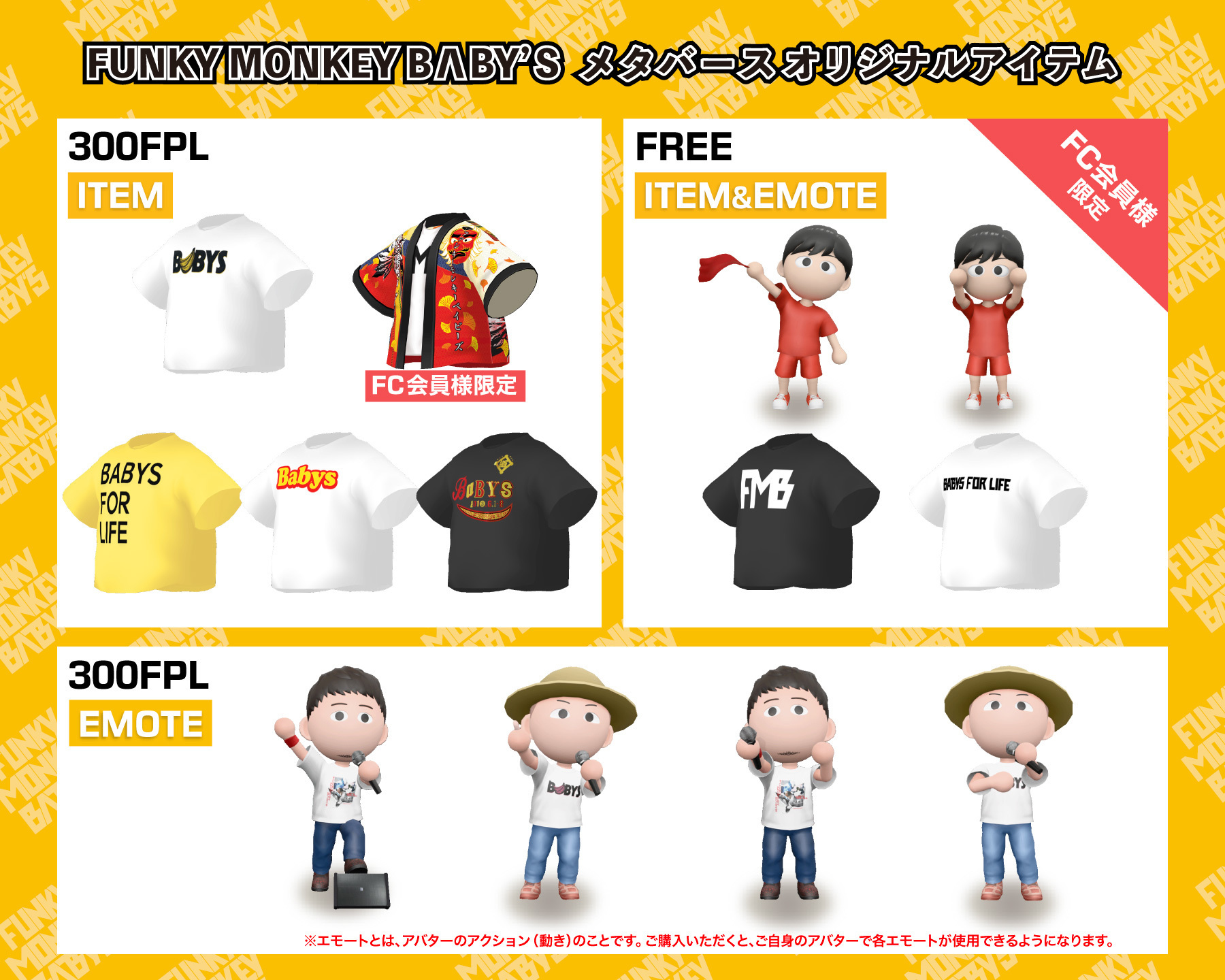 メタバースサービスをよりお楽しみいただけるよう、FUNKY MONKEY BΛBY'Sのオリジナルアイテムが登場!
